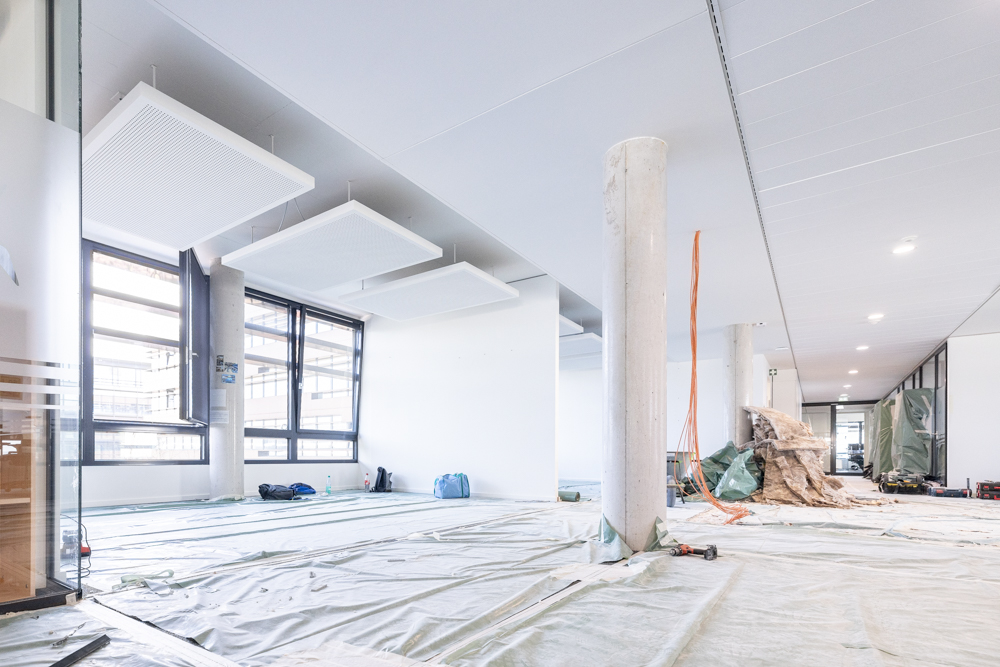 Die Arbeit unter laufendem Betrieb war eine logistische Meisterleistung des Teams. So wurde z. B. etagenweise und mit größtmöglicher Sorgfalt gearbeitet, um das Tagesgeschäft des Kunden möglichst wenig zu beeinträchtigen.