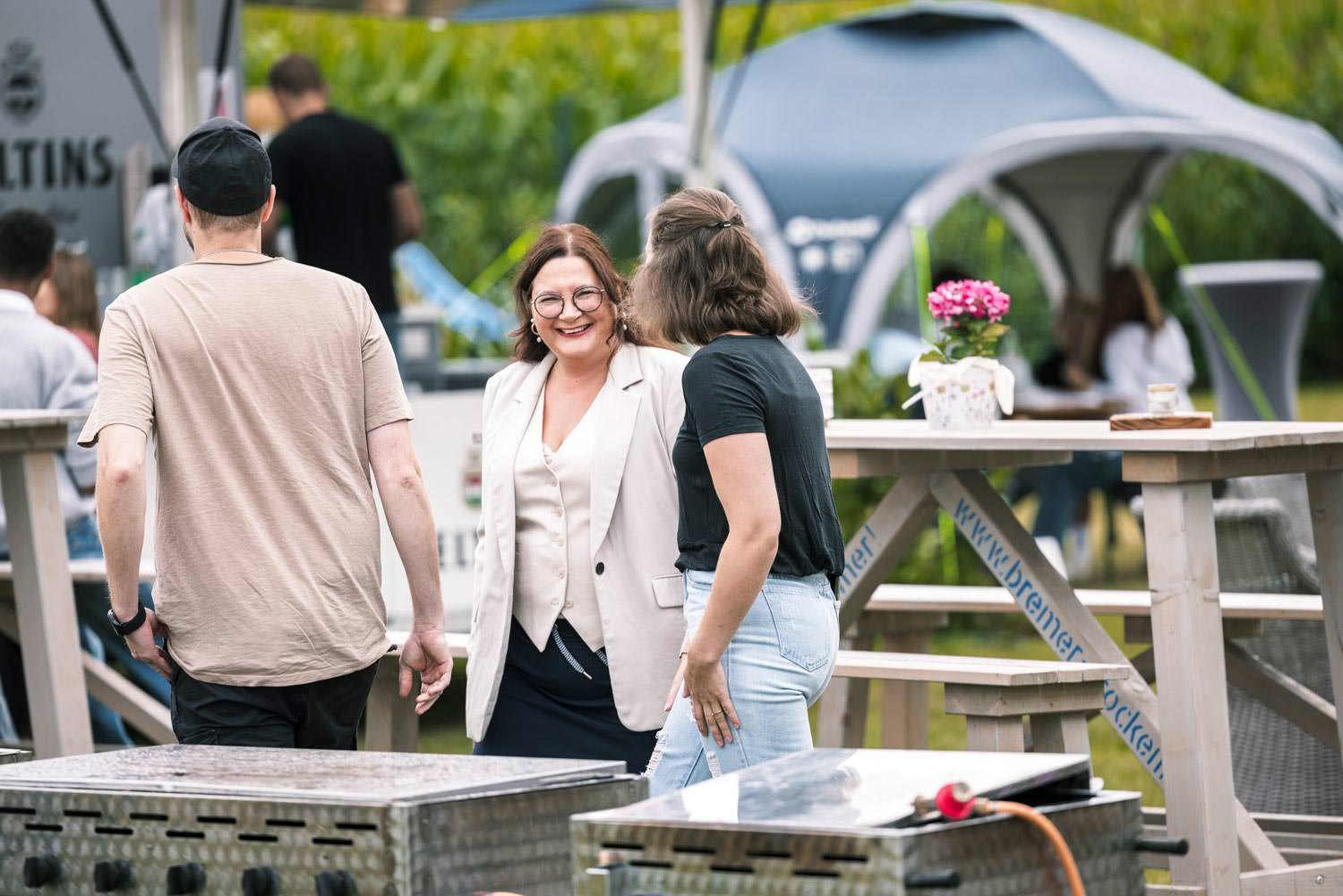 Ein weiteres Highlight des Sommerfestes war die Präsentation des neuen Markenauftritts, der Schritt für Schritt bis Ende des Jahres veröffentlicht wird. Die Bremer Trockenbau GmbH hat ihr Logo und ihre Außendarstellung modernisiert, um den Anforderungen der digitalen Welt gerecht zu werden. „Unsere Arbeit steht für Sorgfalt, Professionalität und Kundenzufriedenheit. „Wir möchten, dass unser neuer Auftritt dies klar widerspiegelt und unsere Kunden in der Region uns als kompetenten Ansprechpartner im Trockenbau wahrnehmen. Der neue Marken-Claim ‚In besten Händen.‘ bringt das zukünftig auf den Punkt“, erklärte Nadine Bremer.