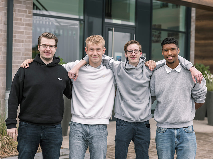 Die neuen BREMER Azubis: Alexander als Kaufmann für Büromanagement, Niklas und Justin (nicht im Bild) als Tischler sowie Luca und John-Marlon als Trockenbaumonteure starten ihre Karrieren bei BREMER.